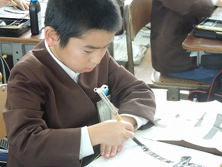 3年生は、書写で「正月」という字を書いていました。姿勢を正しくして、始筆、送筆、終筆に注意して書きます。
