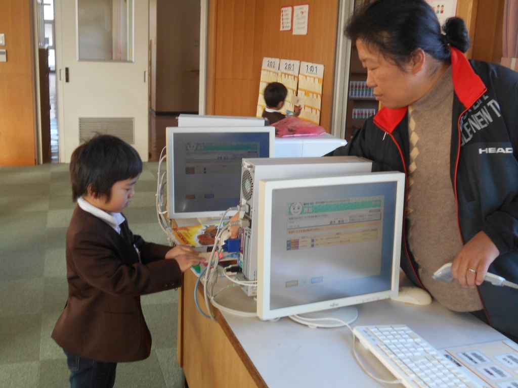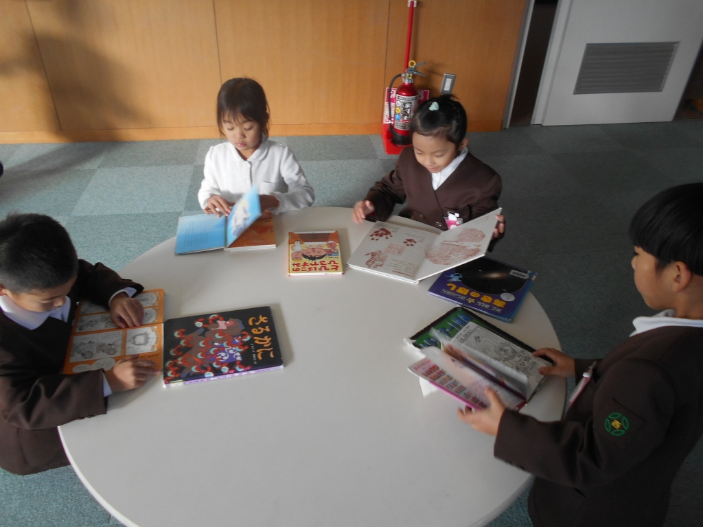 今日でⅡ期が終わりです。各学年、まとめをしたり、冬休みの過ごし方を話しあったりお楽しみ会をしたりしました。1年生は、冬休みに読む本を2冊図書室で借りました。