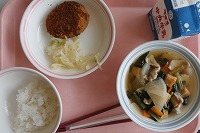 ご飯 牛乳 里芋コロッケ 即席漬け 重陽の節句汁