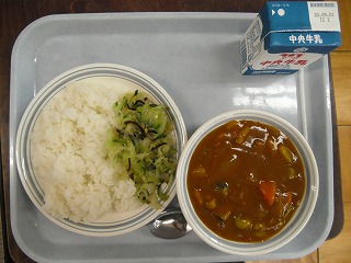 ご飯 牛乳 夏野菜カレー 塩昆布和え