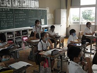 4年生が、「秋」で思い浮かぶ様々な楽しみを考えていました。樹木の紅葉や、南瓜(カボチャ)や栗(クリ)、葡萄(ブドウ)、梨(ナシ)、秋刀魚(さんま)など秋に収穫する様々な野菜や果物、魚など、クラス全員が2回以上発言するくらいたくさん挙がりました。
