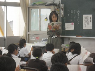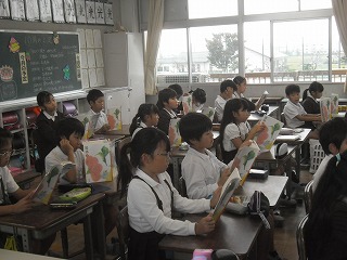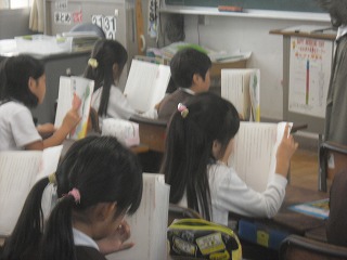 3年生が国語で、「ちいちゃんのかげおくり」を朗読していました。全員で教科書を持ちながら、交代で読んでいきます。長い話ですがどんどん読んでいきました。