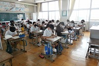 今日は漢字・計算チャレンジの日です。まだ漢字をほとんど学習していない1年生と校外学習に行く4年生以外が真剣に取り組みます。とくに、高学年ともなると、問題の難易度も上がり問題数も増えるので、たっぷり時間を取らなければなりません。