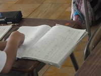 2年生が国語で、文章の読み取りをしていました。獣医さんがする行動の意味を文章中から探すのです。見つけたことはノートに書いていきます。