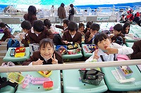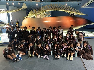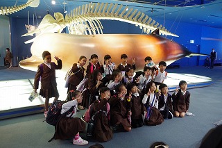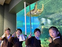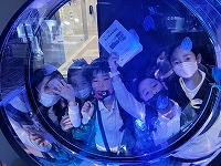 今日は、1・2年生が社会見学で名古屋港水族館に行きました。あらかじめ決めたとおりに順路を通り、日本の近くの海や深い海の中の魚や、サンゴ礁、ウミガメなどを見学しました。そして、待ちに待ったおいしいお弁当の時間は