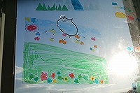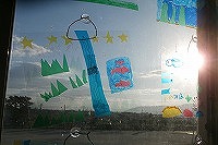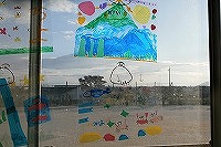 カラフルなステンドグラスが完成し、教室の窓にかけてありました。光が透けてとてもきれいです。