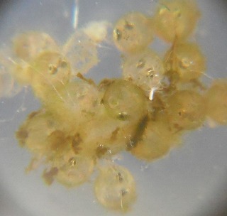 ここで何度か紹介してきたメダカの卵ですが、ずいぶん成長してきて、よく見ると卵の中に体ができてきているようです。
