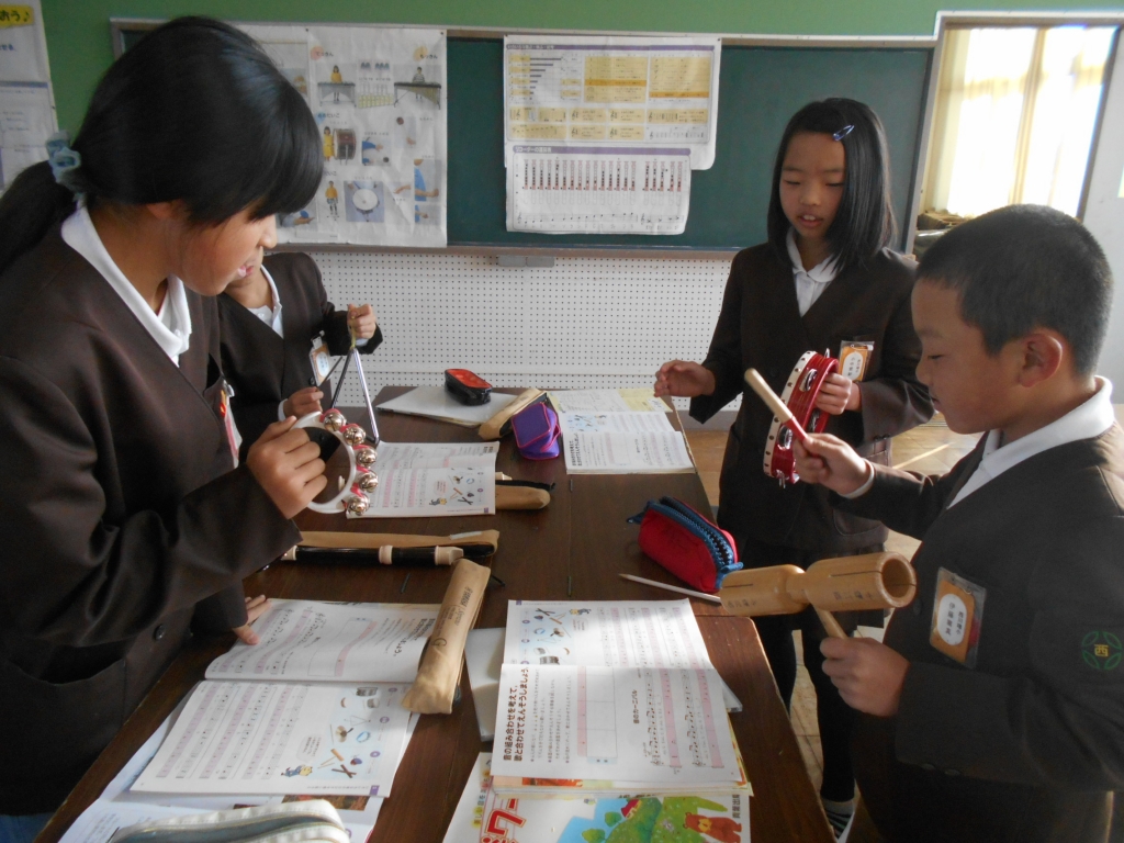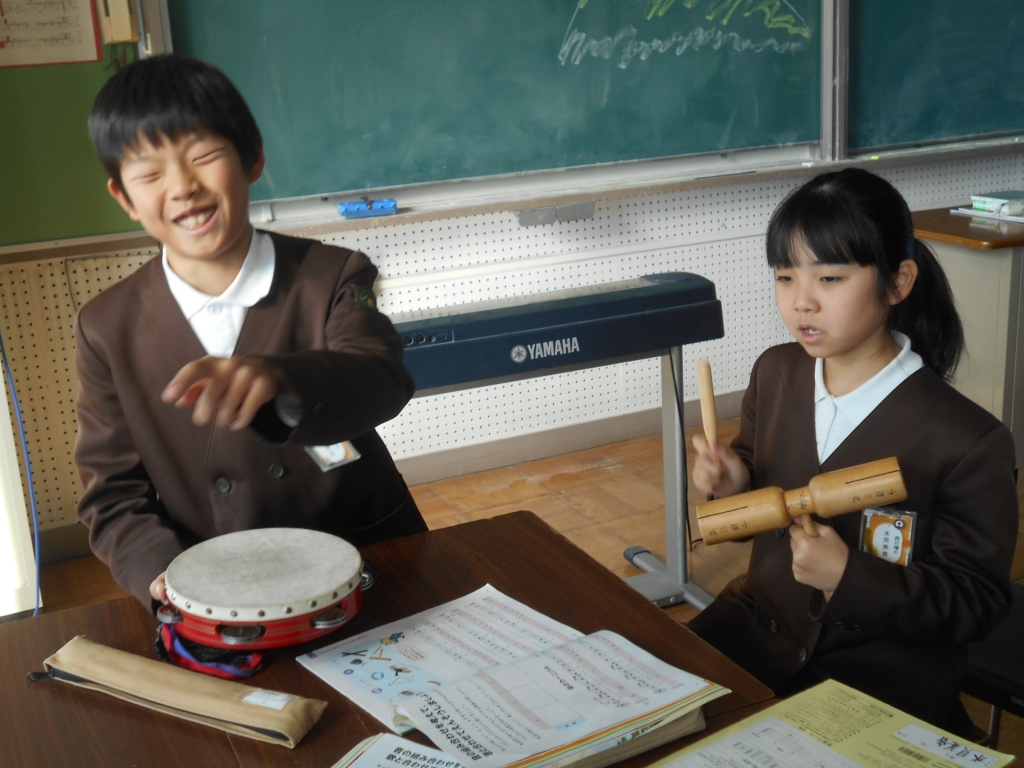4年生は、音楽で「音のカーニバル」の合奏を楽しんでいます。