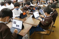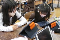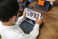 3年生が社会見学のまとめをしていました。タブレットで摂ってきた写真をもとに、グループで話し合いながらまとめていました。