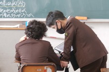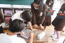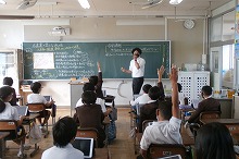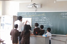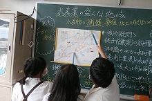 5年生が社会で「水産業の盛んな地域」について学習していました。先に、日本のいろいろな港の水揚げ高を確認し、水揚げ高の多い「銚子港」などがなぜ多いのかを、自分で調べたデータを示し、友達の話を聞きながら、地図などの資料を見て、考えを出し合いました。