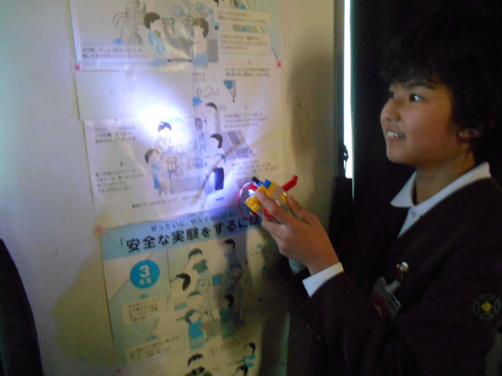 6年生は、理科で電気をためてLEDをつけ、非常用懐中電灯を作り、暗幕で暗くした理科室にあるキーワードを探すゲームをして、楽しく学習しました。