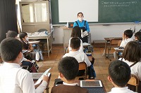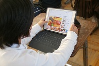 4年生が英語で、wantを使った表現に取り組んでいました。特に、好きな食べ物などを友達に紹介するために、自分の欲しいものをタブレットで探して発表しました。