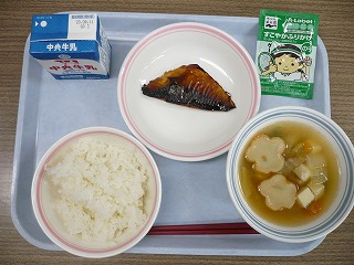 ご飯 牛乳 鯖の照り焼き 十六ささげ入り豆腐汁 ふりかけ