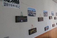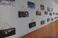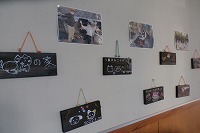 北館と南館をつなぐ渡りにあるギャラリーに、5年生が野外教室で作った「焼き杉」作品が展示してあります。今週末には家族参観が予定されています。来校の折にご覧ください。
