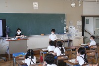 1年生が国語で、夏休みの思い出を発表し、それに対して考えた質問を交代で行っていました。質問するためには話をしっかり聞かなければなりません。発表する方も話す速さや声の大きさなどみんなに聞きやすいように話す必要があります。緊張もしますが、少しずつ経験を積み重ねることで、本当に大事な場面に臨めるようになります。