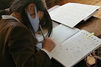 3年生が国語で黙々と新しい漢字の練習に取り組んでいました。みんな静かに集中していました。