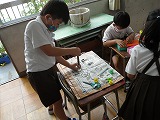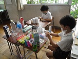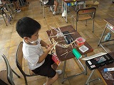 2年生が、生活科で使ういろいろなおもちゃを作っていました。材料もいろいろ、形もいろいろ、色もいろいろです。楽しそうなおもちゃがだんだん出来上がってきます。