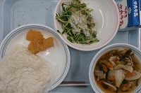 五目きし麺 牛乳 水菜とツナのサラダ わらび餅