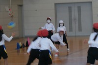 2年生が体育で、ドッジボールに取り組んでいました。ドッジボールは通常相手にボールを当てあうゲームとなっていますが、もともとは当たらないようによけあって、最後まで当てられずに残った人が勝者という遊びがもとになっているそうです。そもそもドッジ(英語の