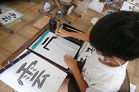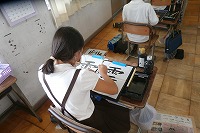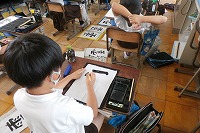 4年生が書写で「雲」という漢字を書いていました。画数が多く、等間隔で描かなければならない場所が多いこの字は、横画と横画の間隔が広くなり、つい縦長になってしまいがちです。細めの横画を等間隔で何本も引くことができると、安定した字を書け雨量になります。