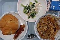 りんごパン 牛乳 やきそば フランクフルトのソースかけ 小松菜の変わり浸し