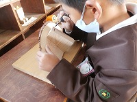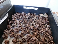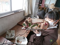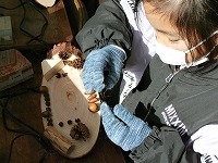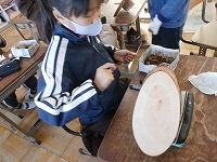 4年生が海部農林水産事務所から講師の先生に来てもらい、森の学習を行いました。いろいろな木の違いについて、木の板や木の実、木の葉などを比べながら教えていただきました。そして、それぞれのどんぐりなどを木の板に貼りつけて、写真立てを作りました。
