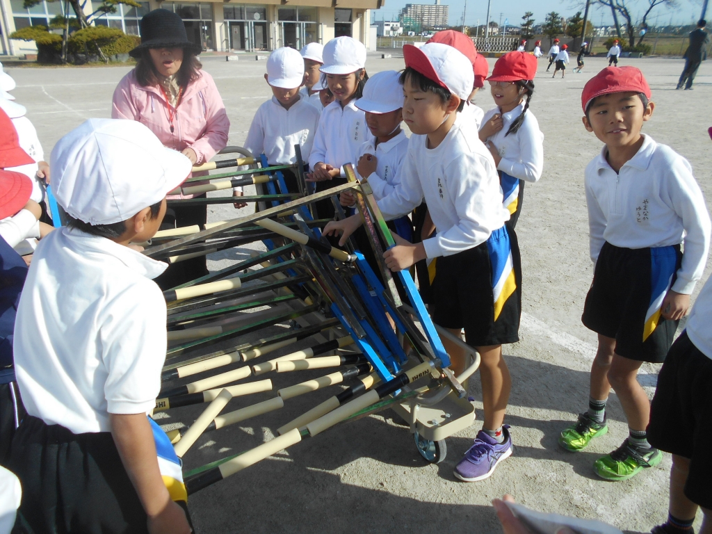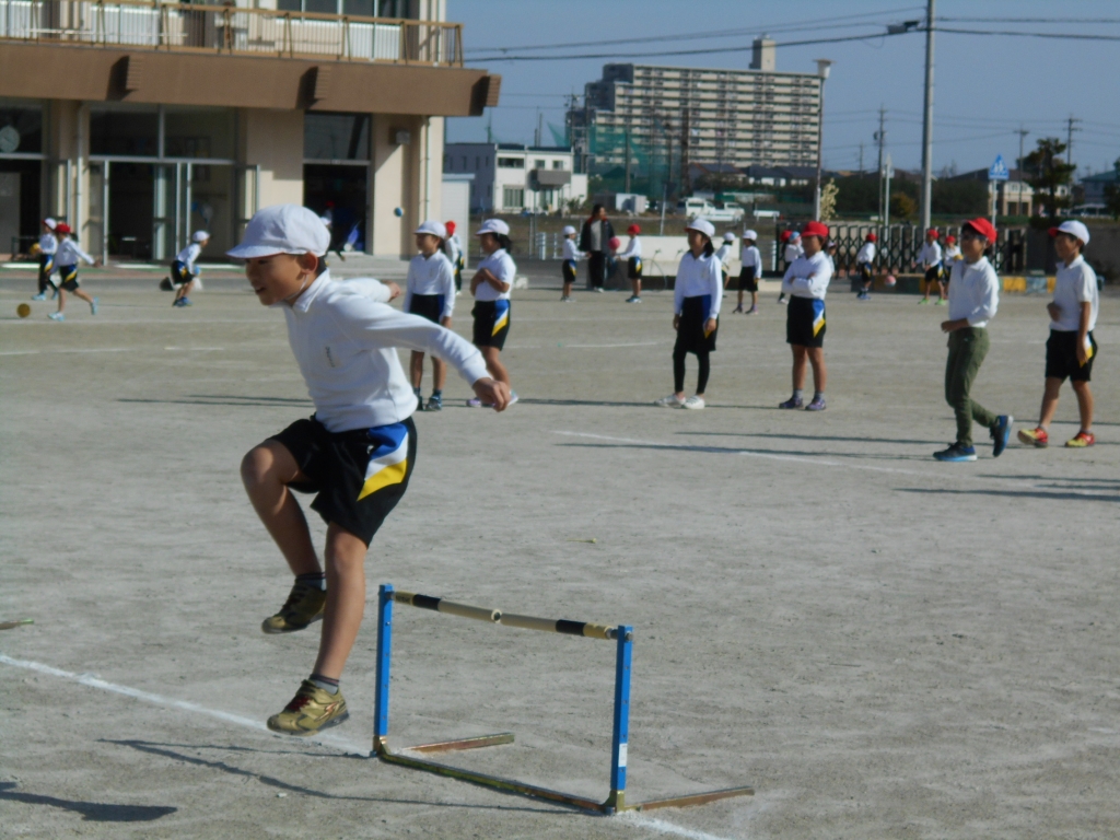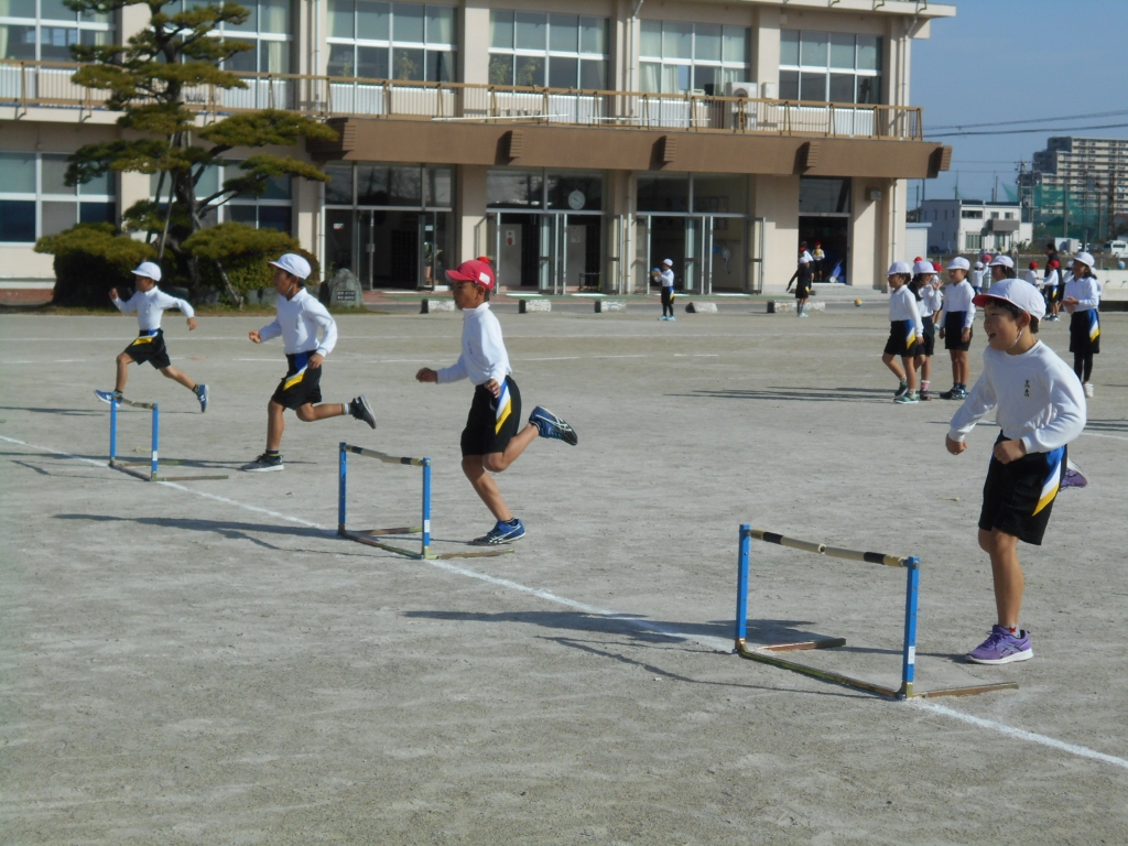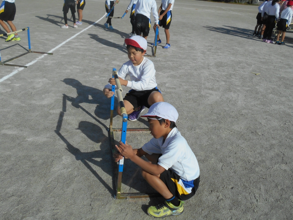 3年生は、ハードル走の練習を始めました。自分たちで、ハードルを手際よく準備して取り組みます。