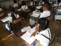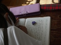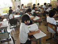 3年生が国語の「ちいちゃんのかげおくり」(作:あまんきみこ)を読んで感想を書いていました。戦争の悲惨さが描かれているこの作品の感想は、なかなか簡単には書けないかもしれませんが、みんな静かに集中して書いていました。
