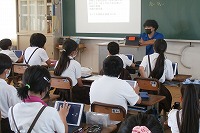 5年生が社会で、日本のいろいろな地域について調べてまとめようと準備をしていました。まずは暑い地方のくらしとして沖縄について調べてみます。沖縄の特徴的な気候や風習、文化など、子どもたちはどんなことに興味をもち、どんな風にまとめるのでしょうか。