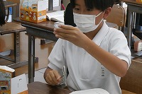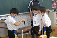 3年生が理科で、「音」について考えていました。「音」とは何か、なぜ聞こえるのかなどの疑問を考え、予想し、実験で確かめます。