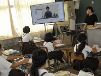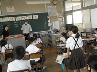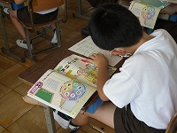 4年生は、いろいろな国の子どもたちが自分について話をしている映像を見て、聞き取りをしていました。今回は名前や国のほかに、特に曜日を中心に聞き取ります。日ごろ日本で呼ぶ名前とは全く発音の違う国や、日本では聞いたことのない名前もあって、難しそうでした。