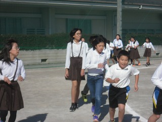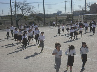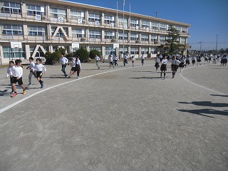 火曜は5年生が、水曜は6年生が、それぞれ社会見学だったので、今日が初めての全員での業間ジョギングです。