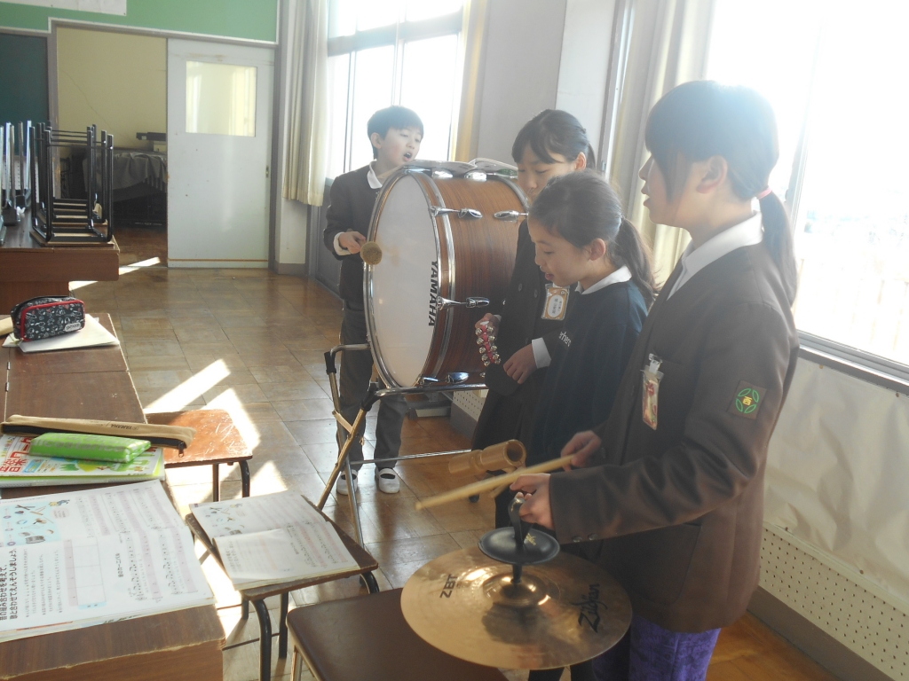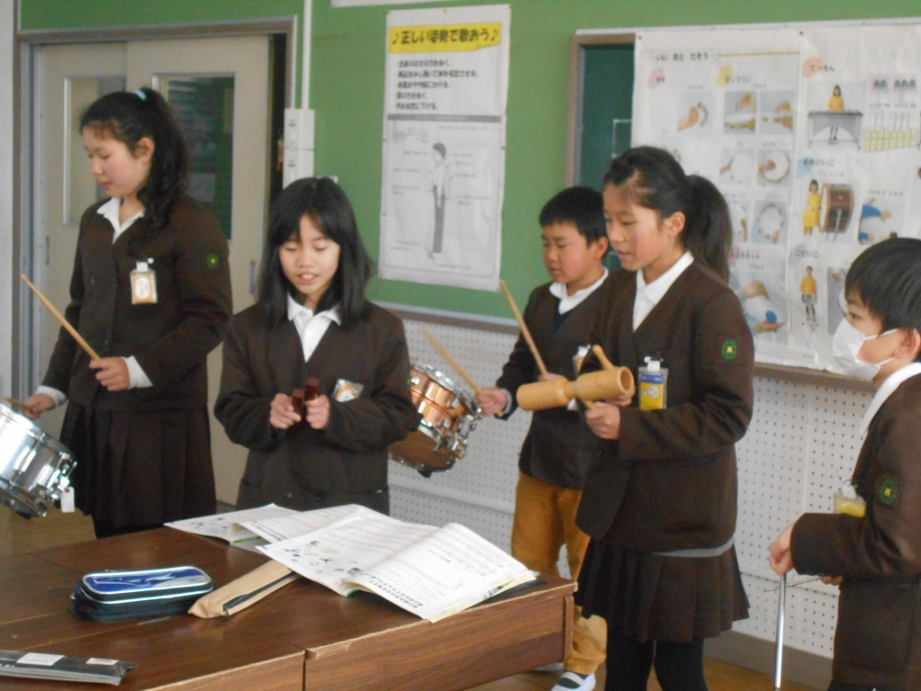 4年生は、音楽で「音のカーニバル」を音の組み合わせを考えて、歌と合わせて演奏しました。