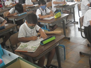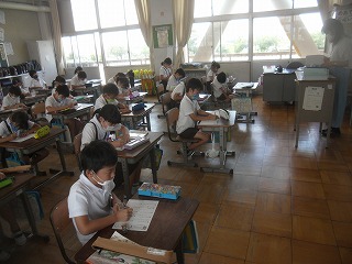 3年生が国語で小テストを行っていました。新しい漢字や、新しい読み方など、言葉を中心に確認していました。