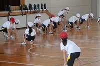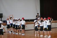 3年生が体育でダンスの練習をしていました。今日は4年生と合同でないので、3年生の中から自信のある子や前に出て踊りたい子が見本になります。