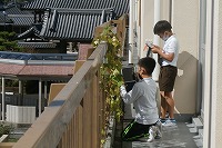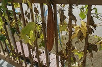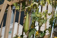 子ども達は4年生で、理科の時間にヘチマの観察をしていました。5月頃に種をまき、もうすぐ半年がたちます。種ができるくらいになっている茶色の実もあれば、まだ成長している緑の実もあり、なんと新しい花も咲いています。すごい生命力ですね。