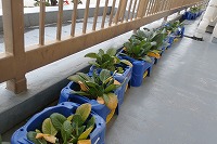 教室のベランダには植木鉢で育てている野菜が順調に成長しているようです。懇談の折に家にお持ちいただくようお願いします。