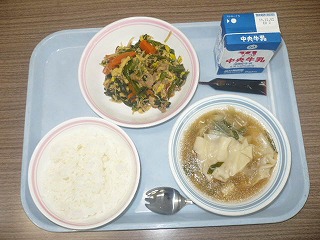ご飯 ピビンパの具 牛乳 ワンタンスープ コーヒー牛乳の素