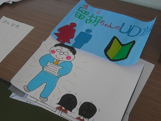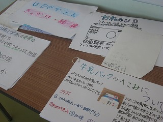 5年生はUD(ユニバーサルデザイン)について調べたことをまとめました。廊下に展示してあります。