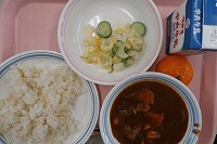 ハヤシライス(金芽ロウカット玄米ご飯) 牛乳 コーンサラダ 冷凍みかん