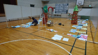 本日午後からの作品展のために、昨日、児童の皆さんが帰った後、先生たちは準備に励みました。