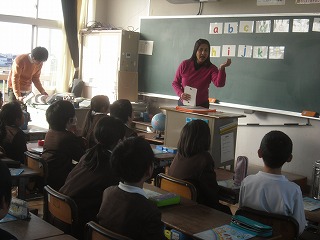 4年生が、英語でアルファベットの小文字を学習していました。声に出して順番に言ったり、カードを見せてその文字を声に出したり、がんばりました。