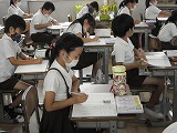 3年生は国語で漢字ドリルの復習をしていました。もうすぐ漢字・計算チャレンジがあるので、みんな真剣です。