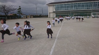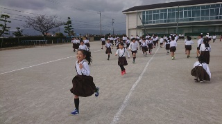 5年生は社会見学中ですが、今日から業間ジョギングが始まりました。寒さはそれほどでもないですが強い西風が吹いて、体感温度が下がっていました。それでも、みんな元気に準備運動をして勢いよく走っていました。
