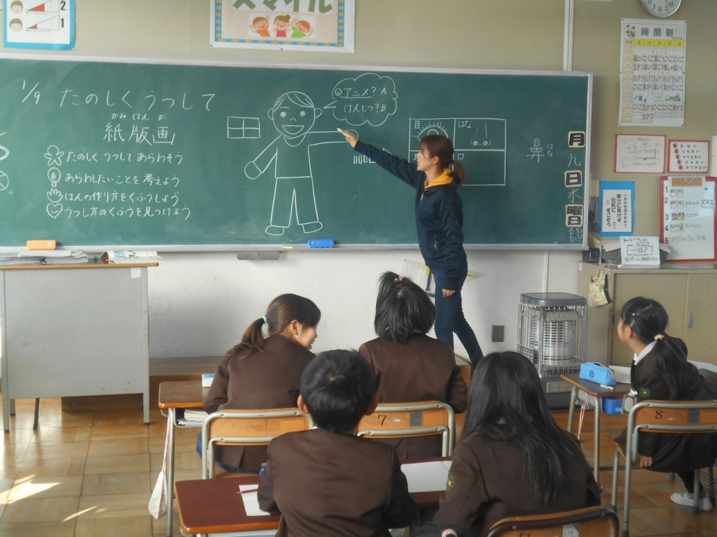 1月9日 フラッシュ漢字・紙版画 (2年国語・図工)