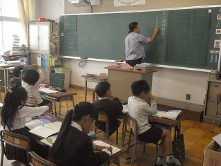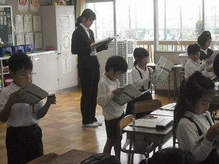 1年生が、国語の「くじらぐも」の斉読をしていました。場面ごとに子どもたちの気持ちやクジラ蜘蛛の気持ちを考えながら読みます。