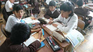 6年生の社会で、前期のまとめを考えていました。自分たちが学習した内容で重要だと思うものを班ごとに挙げていきます。意見がたくさん出てきて放課になっても考えている班もありました。