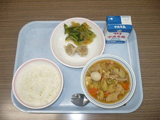 ご飯 牛乳 八宝菜 焼売(シュウマイ) 糸寒天のナムル