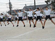 高学年のダンスはエグザイルの「ライジングサン」に合わせた「Rising Nishikawabata Sun」です。かっこいい曲でかっこいいダンスをかっこよくそろって踊りました。途中で隊形変換もあり、高学年らしく洗練された踊りでした。