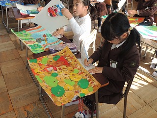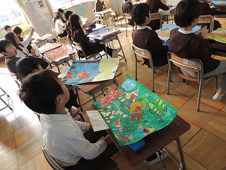 2年生は、図工で描いた作品をお互いに鑑賞しあって、良い所を見つけ、ワークシートにまとめました。